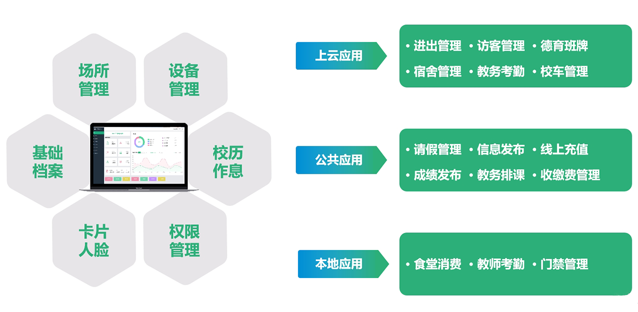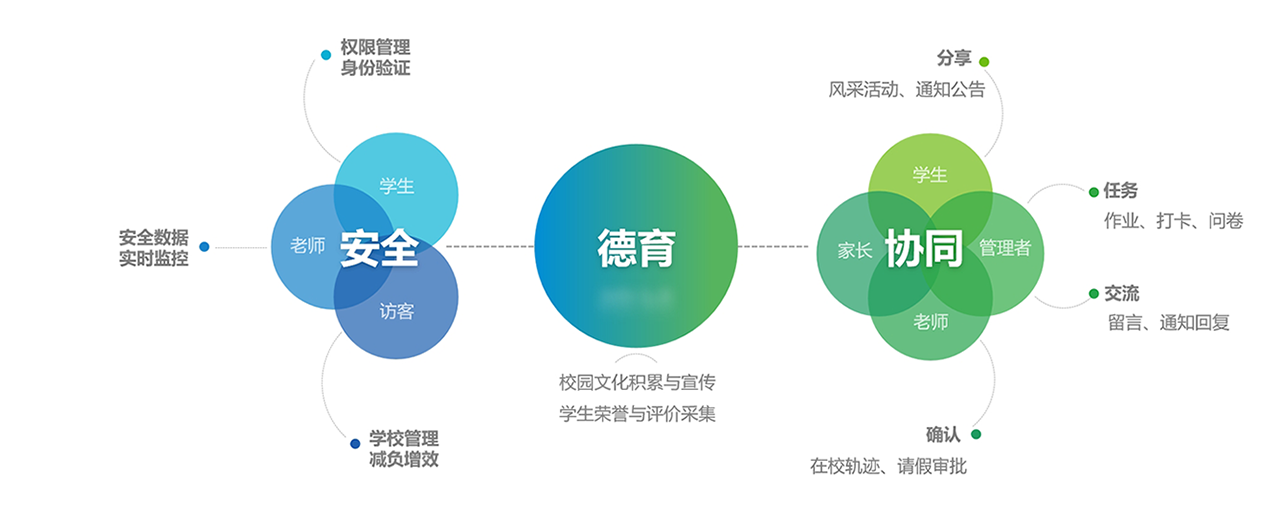 中科强校云教育平台,是面向国内中小学基础教育市场,依托教育信息化2.0行动计划建设要求的智慧校园整体解决方案。方案主要围绕校园安全监管、德育文化建设和家校互联互通等校园管理的核心场景,向学生、家长、教师、学校和教育主管机构,提供基于人工智能、物联网、云服务和身份识别大数据的应用产品及整体解决方案。