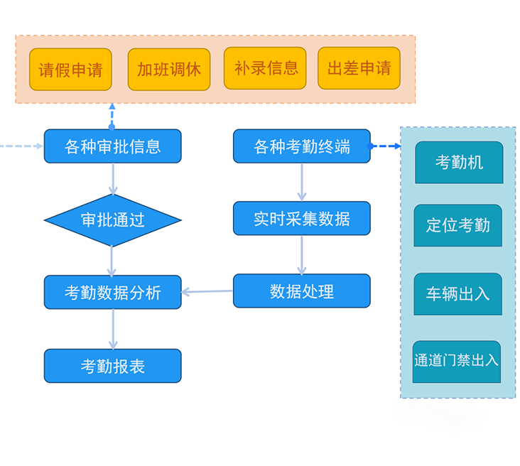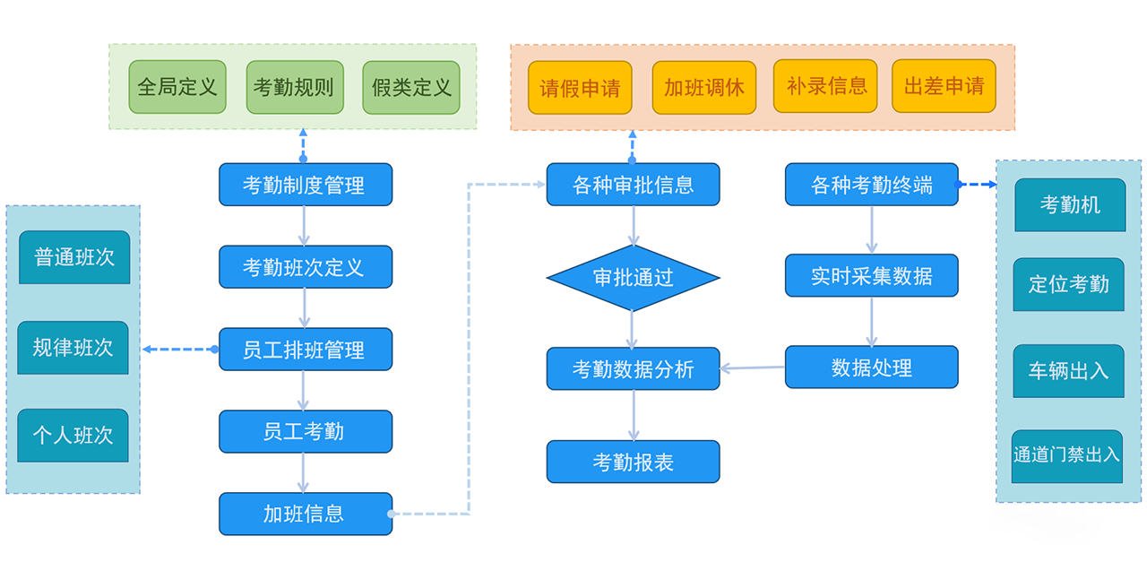 考勤系统主要包括考勤设置和考勤记录的统计与输出,快速输出企业的工作量情况。考勤系统不仅限于简单的上下班签到,对于企业的规范化管理更是至关重要。目前大部分厂家的签到数据已经不局限于考勤系统中的自有数据,更是兼容了出入、通道、车辆道闸等员工在公司内部有效行为产生的数据。